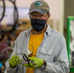 Gregg Kato bleeds the hydraulic brakes on a Knolly Endorphin full suspension mountain bike. This month’s spotlight shines brightly on our Shop Manager Gregg Kato, who has been invaluable in helping with retail, donor and volunteer activities in the shop for the last year.