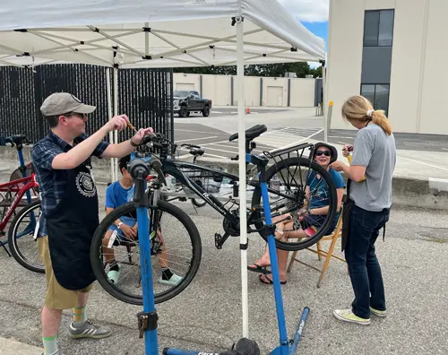 Stopping by our shop? Make an appointment to shop for a bicycle or parts, ask us questions about volunteering, drop off a donation, receive service for your bike, or anything else! Shop Hours are Monday / Wednesday / Friday, 11:00 am - 5:30 pm.